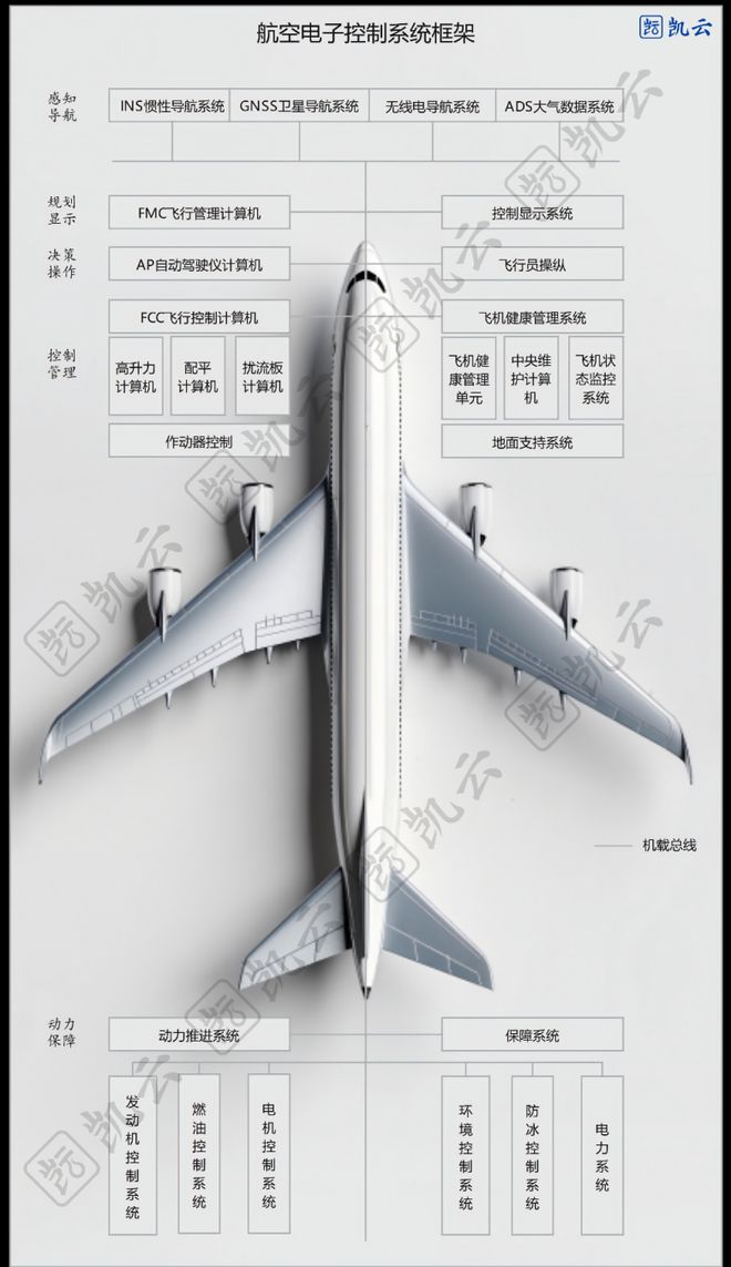 全球航空业正经历从双寡头到多极化的深刻变革。中国商飞凭借C919加入干线拓展细分市场,巴西航空工业则巩固支线优势。技术层面,综合模块化航电(IMA)架构成为新标杆,动力系统向电动化与新能源突破,这推动适航认证体系向更灵活的标准演进。同时,第六代空战系统推动军民技术深度融合,低空经济与数字化运维则催生全新产业生态。竞争核心已升维至定义技术标准、构建产业生态的体系化能力。一个在标准、技术与生态中多维竞合的新时代已经到来。现代航空电子与控制系统是一个基于“感知-决策-控制-执行”逻辑分层智能系统。感知层(INS、GNSS、ADS、无线电导航)持续采集飞机状态与外界环境数据。规划与显示层的核心:飞行管理计算机,作为大脑,处理信息并生成优化的飞行计划,通过显示系统与飞行员交互。决策与控制层的飞行控制计算机则像神经中枢,将指令转化为具体的舵面控制命令,由飞行员或自动驾驶仪执行。最终,动力系统(发动机、燃油控制)、环境控制系统、电力系统等提供了全面动力与保障,并由飞机健康管理系统全程监控。整个系统通过高速数据总线交联,正向着深度综合化与高度智能化演进,是飞机实现安全、高效自动飞行的核心,也是进行系统设计与测试的基石。