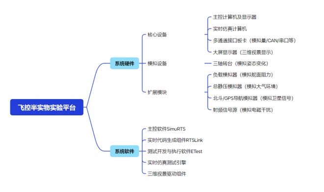 飞控半实物实验平台包括系统硬件和系统软件两部分。系统硬件和软件的组成及功能主要为: