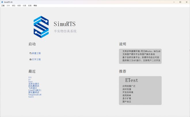 主控软件:SimuRTS作为主控软件,可将Simulink中的模型文件以及生成的代码文件导入,建立对应的仿真工程,并完成模型自动下载、运行控制、模型状态监视、在线调参、数据存储及后处理等功能。