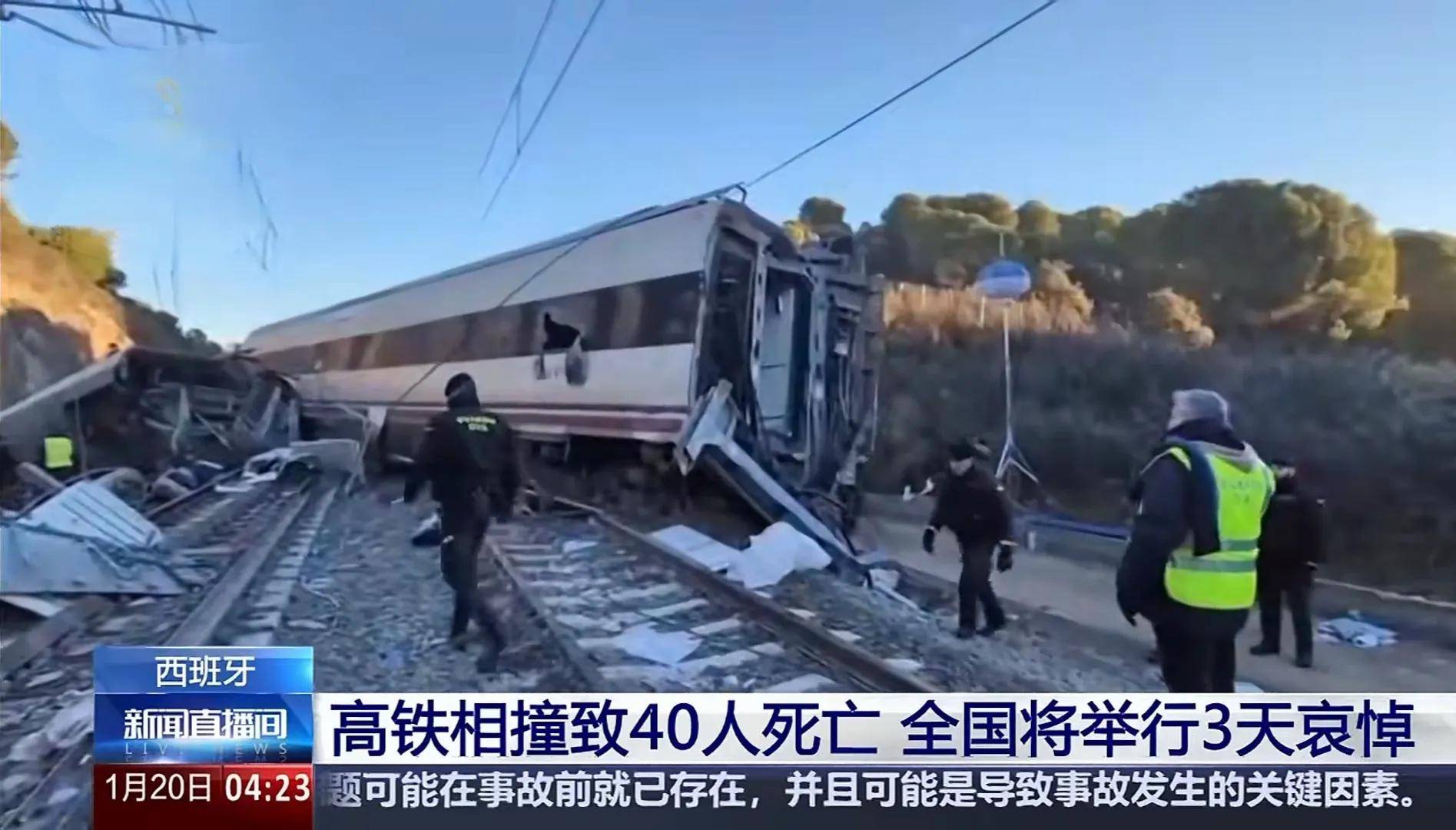2026年1月18日晚间,西班牙南部科尔多瓦省阿达穆斯镇附近发生重大高铁事故:该国高铁私营运营商Iryo旗下一列载有300余人、从马拉加开往马德里的高速列车,行驶中最后三节车厢突然脱轨并侵入相邻轨道,与迎面驶来、载有200余人的西班牙国家铁路公司(Renfe)列车相撞。据央视新闻、光明网等媒体1月20日的报道,截至20日12时,事故已造成至少40人死亡、150余人受伤,另有37人失联,西班牙官方已宣布全国哀悼三天。